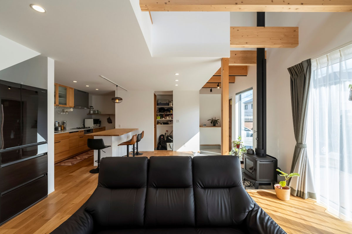 耐震面では、木造住宅の柱と梁を強固に接合するラーメン構造を導入した「SE構法」を採用しています。これにより、高い安全性を確保しながら、柱や間仕切り壁の少ない開放的な空間づくりを可能にしています。